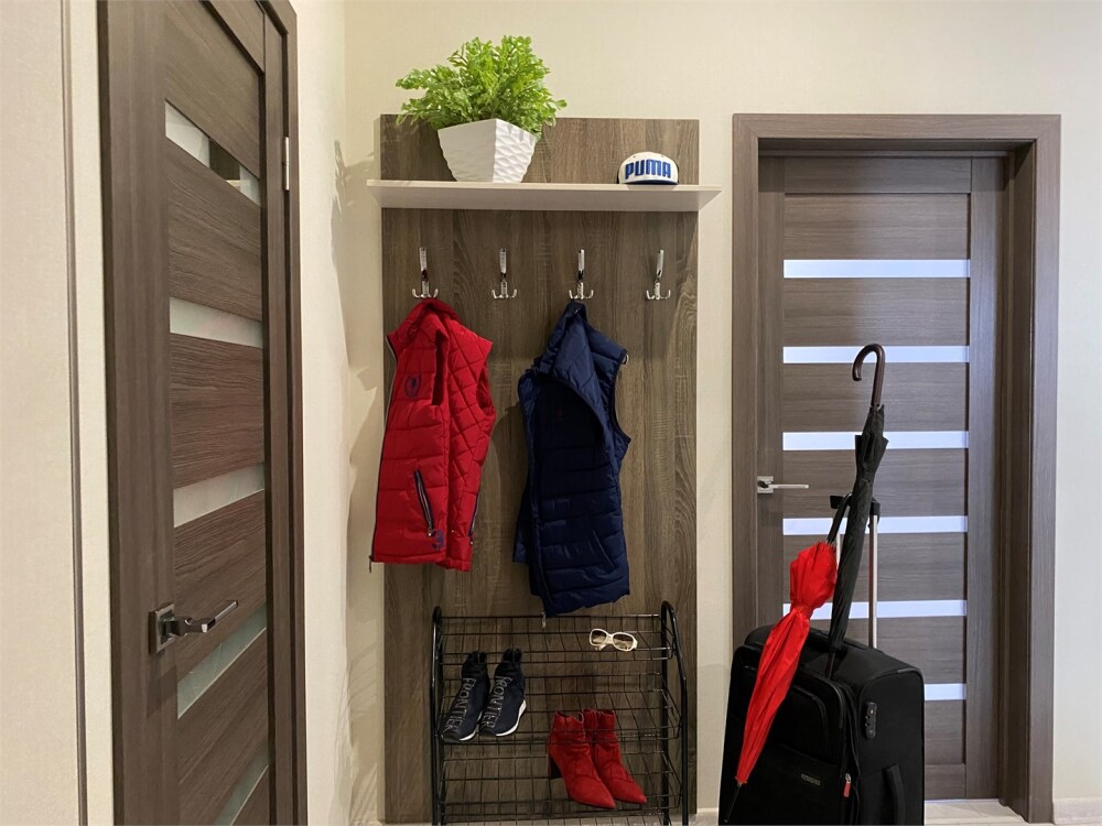 Апартаменты находятся на втором этаже пятиэтажного дома. В апартаментах 1 уютная комната на 4-5 спальных мест, телевизор с цифровыми TV-каналами, кухня. Здесь есть вещи необходимые для жизни и отдыха, например: стиральная машина, газовая печь, микроволновая печь, утюг и вместительный холодильник.