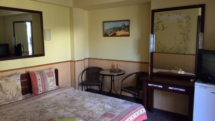 В каждом номере: двуспальная кровать, шкаф, журнальный столик, зеркало. телевизор, интернет. кондиционер. холодильник,