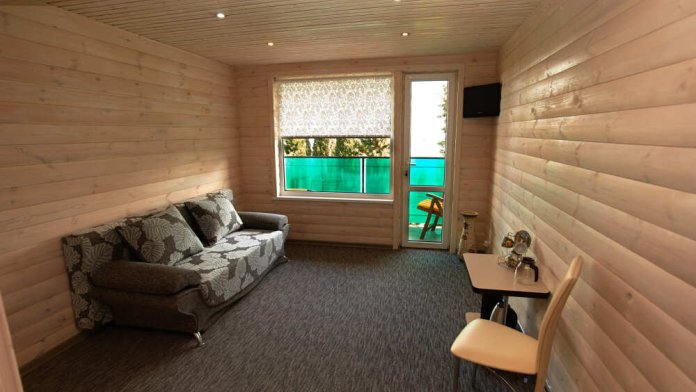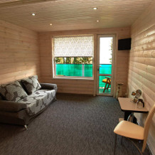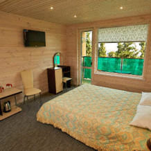 Комнаты расположены на 4-м этаже, вид на море, отделка натуральным деревом (сайдинг). Балкон с мебелью и сушкой, в комнате удобства: с/узел, душ.кабина, фен, TV, сейф, эл. чайник, холодильник, кондиционер. кровать двуспальная либо 2 односпальных, доп.место – диван-дельфин