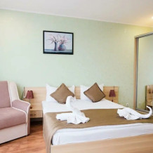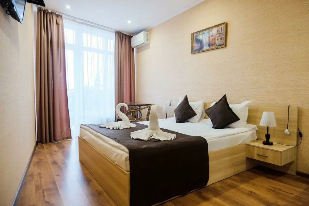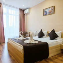 Уютные и комфортные номера с прекрасным индивидуальным дизайном, санузлы с душами, фены, кондиционеры, плазма TV со спутниковым ТВ, отоплением.