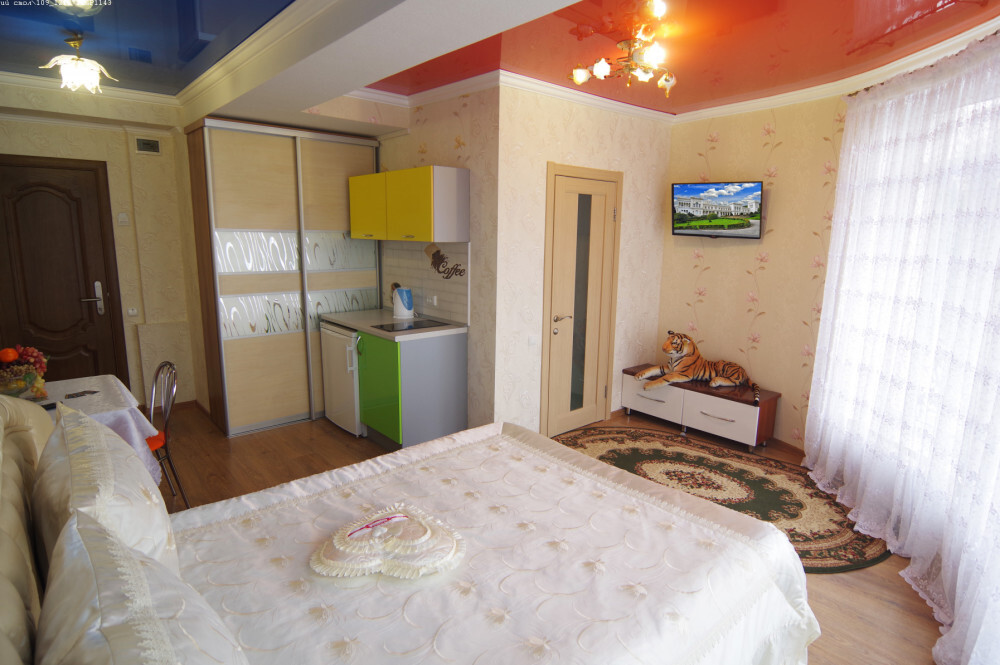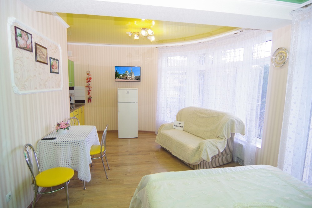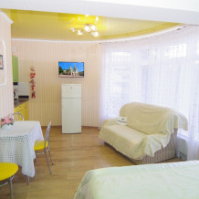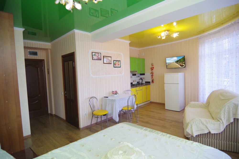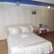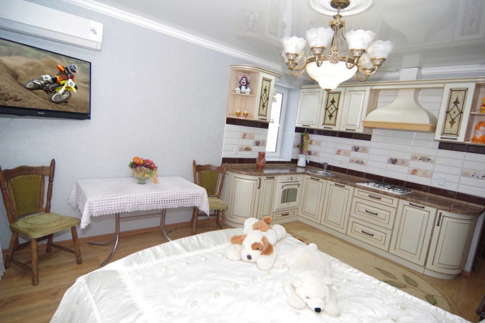 В любое время года и в любое время суток гостевой дом «На Октябрьской» предоставляет 4 уютных апартамента, дизайн которых создает атмосферу безмятежности, уюта и комфорта. Кухня укомплектована всей бытовой техникой. Ванная комната, душ и санузел, стиральная машина, фен, горячая и холодная вода постоянно, даже если нет в городе воды - своя скважина.