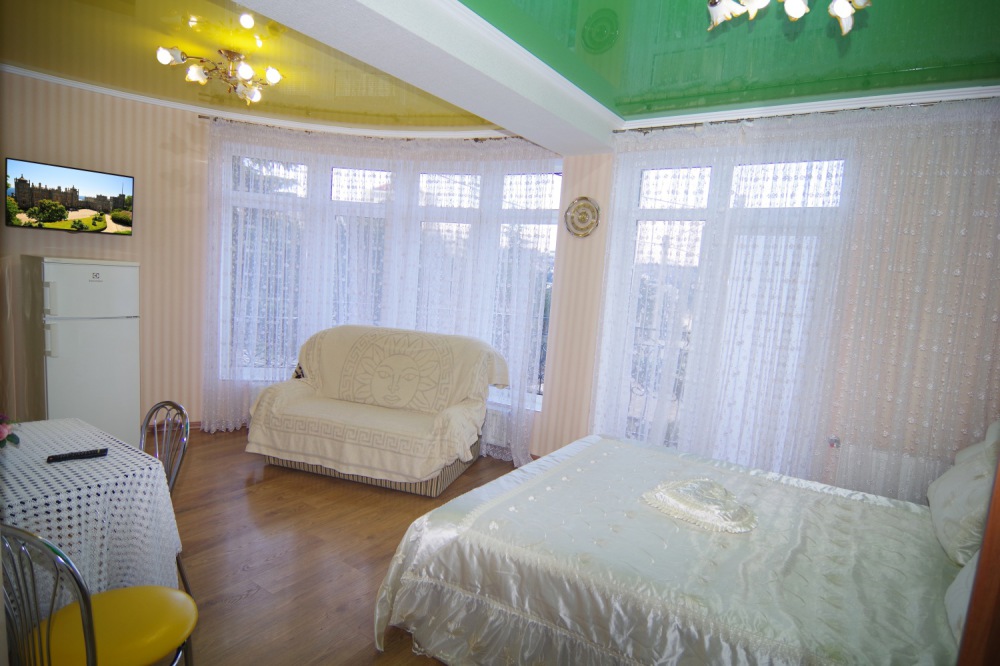 В апартаментах кондиционеры, спасающие от летней жары. Плазменный телевизор, бесплатный WI-FI, пакет цифрового телевидения 80 русско-украинских каналов, автономное газовое отопление, паркинг в 5 метрах от гостевого дома. Все комнаты оборудованы так, что на протяжении всего отдыха Вы чувствуйте себя как дома. Вам захочется остановиться в каждом из них - настолько они индивидуальны.Наши условия проживания в гостевом доме – одни из лучших,за эти деньги, что могут предложить дорогие отели, гостиницы и собственники квартир г. Алушты. Есть изумительные виды из окон нашего дома.