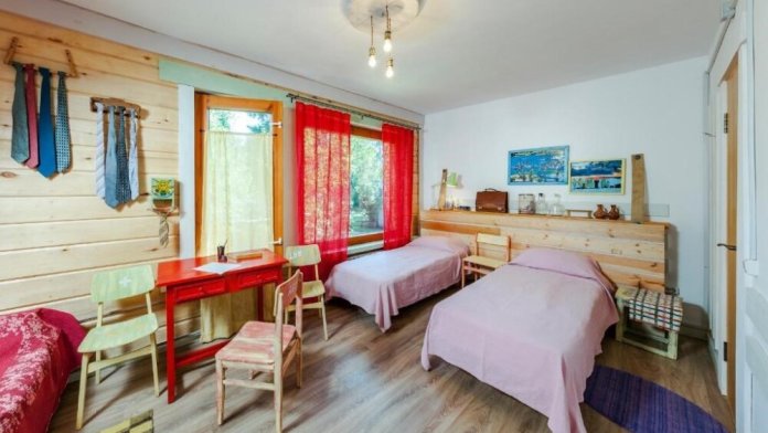 Однокомнатный комфортный номер с тремя односпальными кроватями в даче-отеле в стиле 30-х гг «Гранж Авангард». В номере - три тумбочки, три стула, стол, холодильник, телевизор, электрочайник, фен. Ванная комната с душем и туалетом.