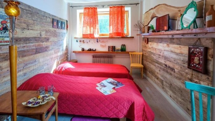 Однокомнатный комфортный номер с двумя односпальными кроватями в даче-отеле в стиле 30-х гг «Гранж Авангард». В номере - две тумбочки, холодильник, телевизор, электрочайник, фен, тапочки. Ванная комната с душем и туалетом.