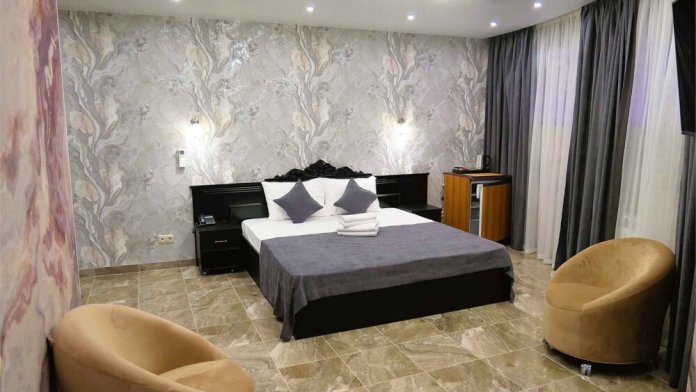 В нашем отеле двухместные комфортабельные номера различных классов: Дабл и Твин. Номера оснащены удобной мебелью, холодильником и современной техникой. Также у нас есть апартаменты с сауной, джакузи, парилкой, спальной комнатой с душевой кабиной и отдельной кухней.