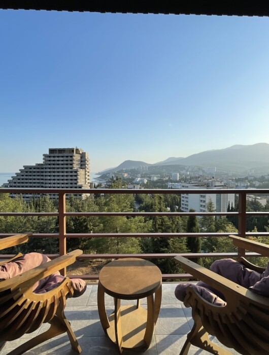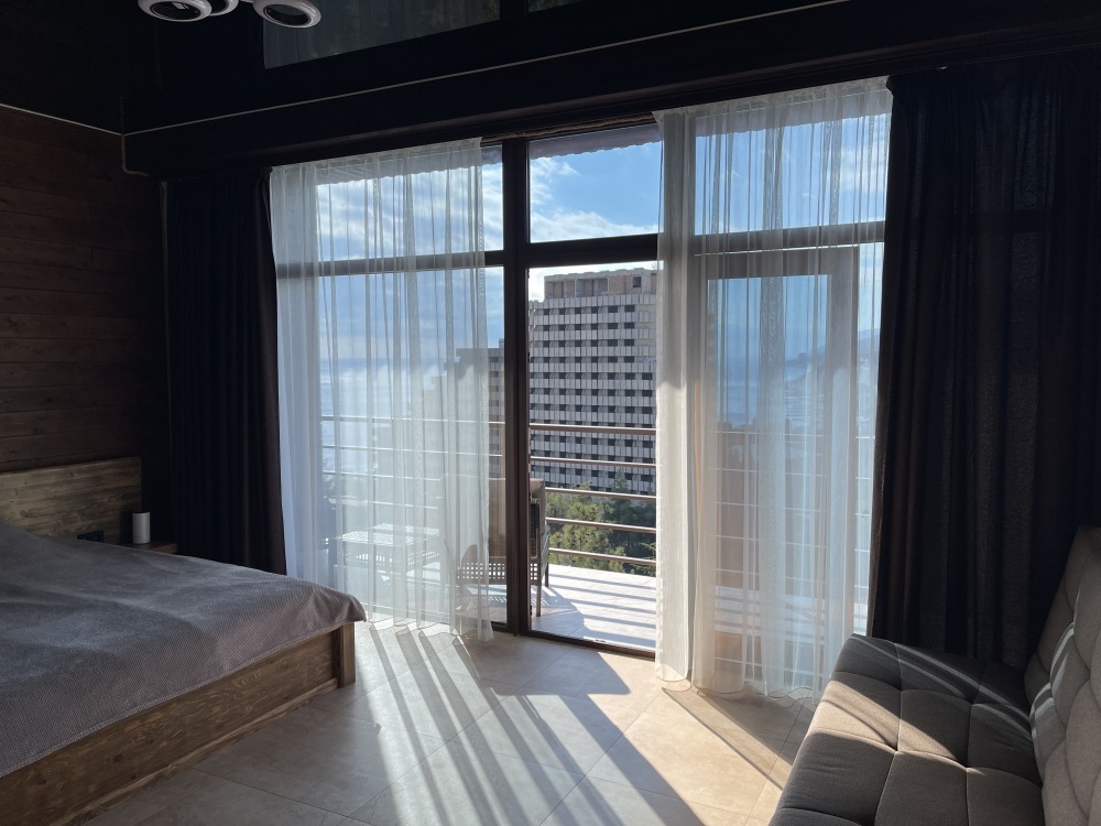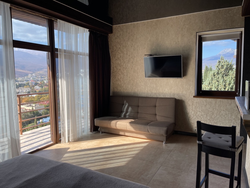 Новый, современный номер с кухней на 2 этаже, с балконом, видом на горы, море, город.
