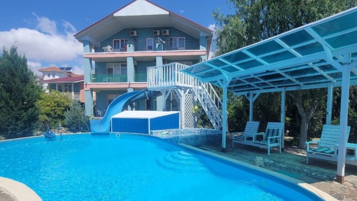 На уютной территории гостевого дома есть бассейн с тропой здоровья, джакузи, финская сауна, беседки для отдыха, пруд с живыми рыбками и черепахой. Бассейн работает с 11:00 до 21:00, перерыв на тихий час - с 13:00 до 15:00. Для детей игровой домик, песочница, качели. Рядом детская площадка. Доступ в интернет по всей территории.