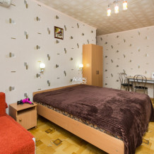 Балкон общий. Кухня общая на три номера на этаже: газовая плита, СВЧ, большой холодильник. Общая на эти три номера столовая с индивидуальными столиками.