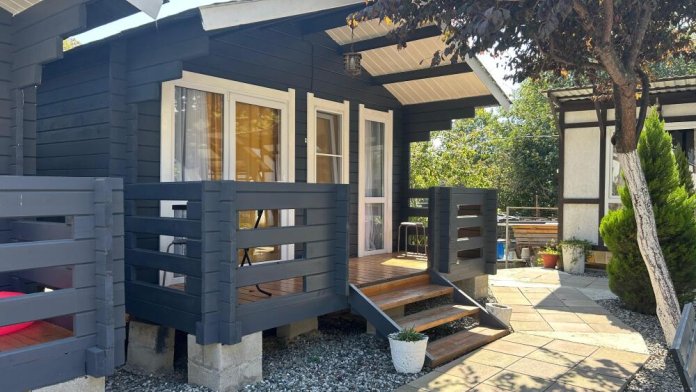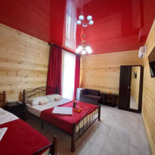 Отдельный Домик эконом класса. В номере только необходимая мебель, все удобства отдельно на улице 3 туалета и 3 душа благоустроенные, как в квартире. Есть летняя кухня, где можно готовить или столовая во дворе, также на территории дома есть беседки, качели, песочница.