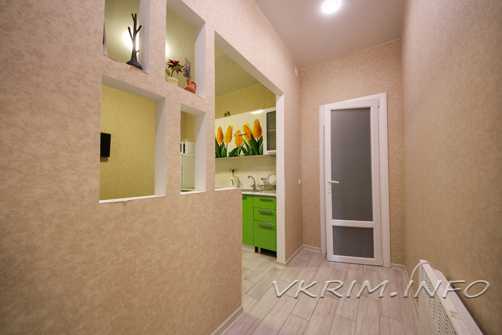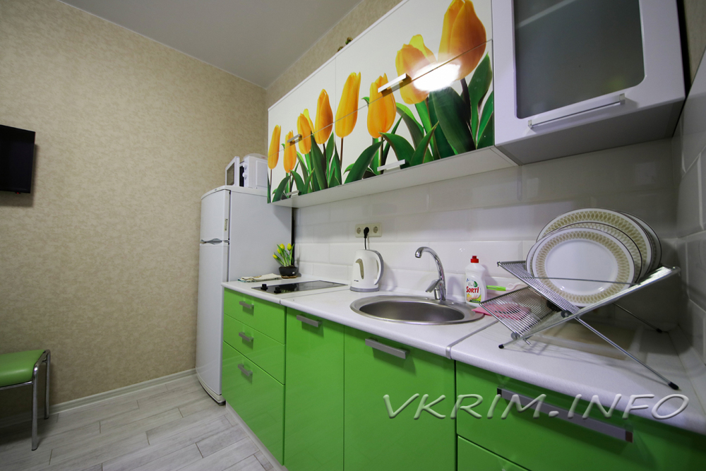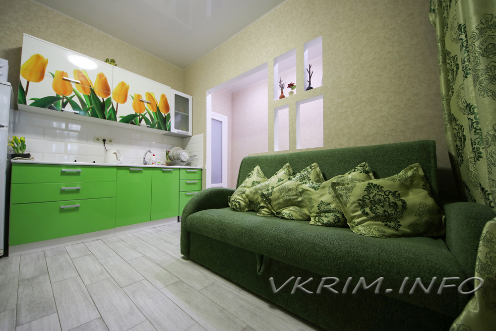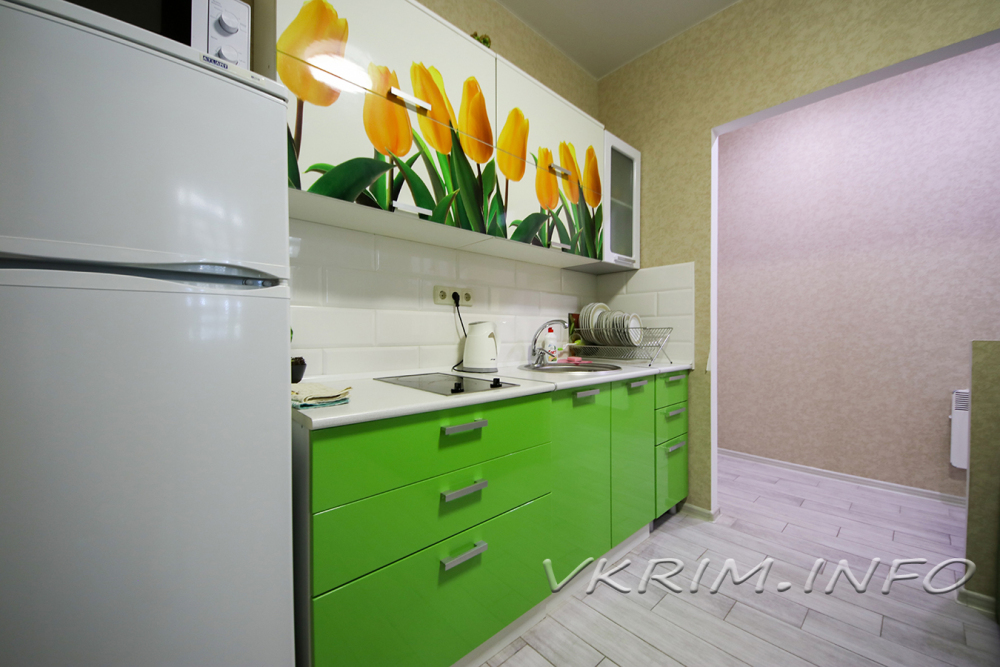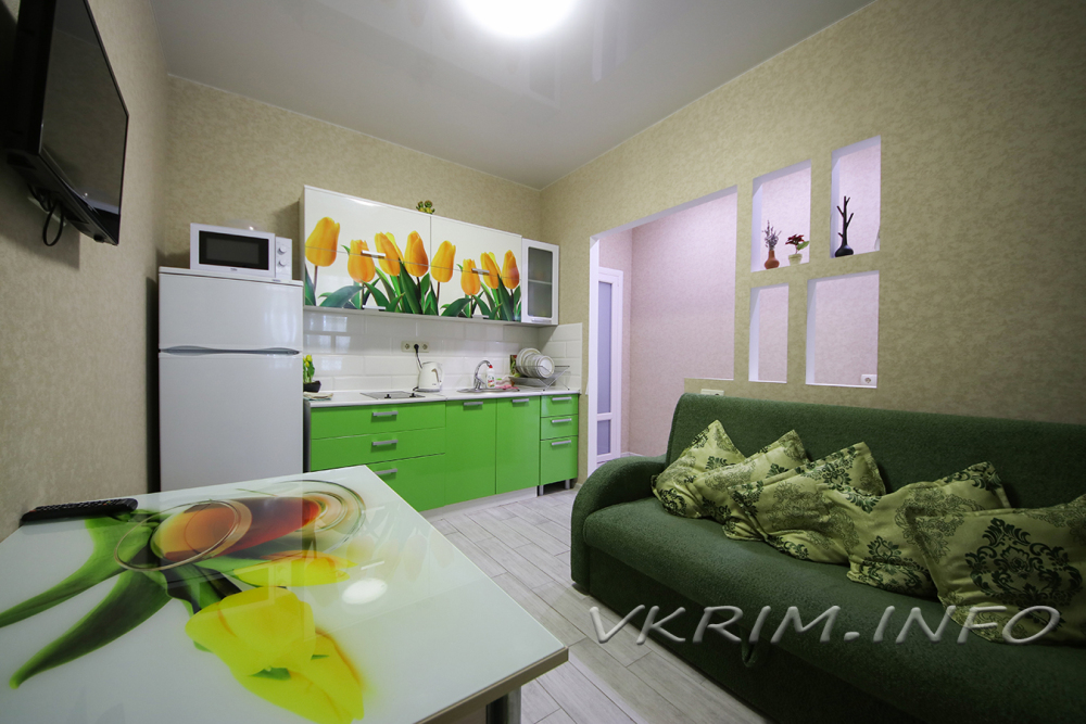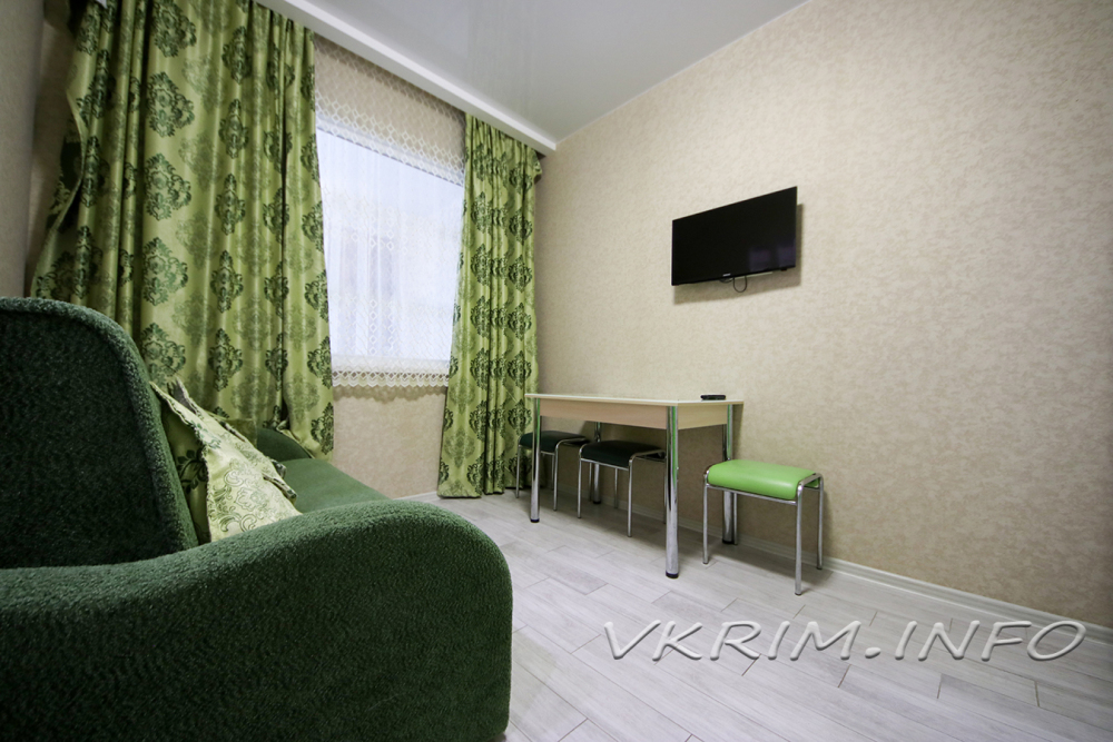 Для вашего летнего отдыха в Феодосии предлагается просторная евро-двушка квартира с небольшой собственной террасой для отдыха на свежем воздухе.