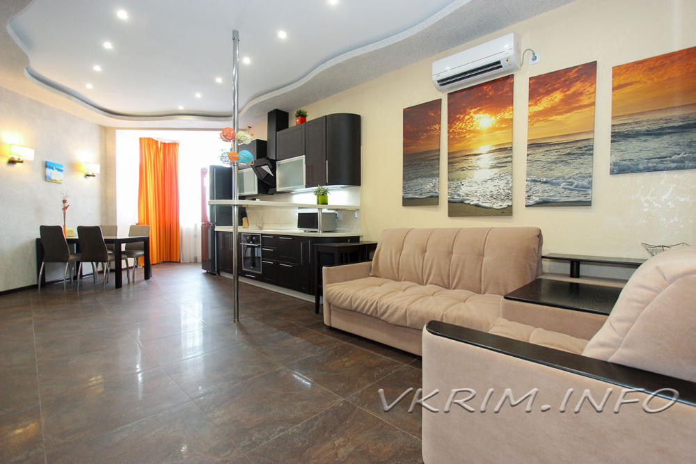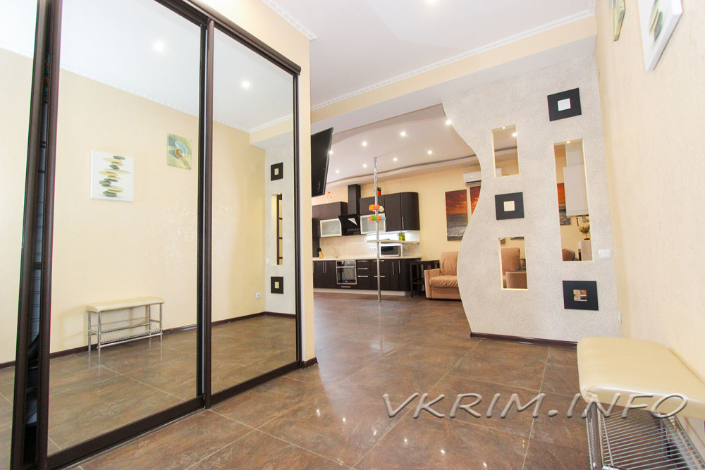 Для Вашего отдыха в Феодосии предлагается роскошная 2-комнатная квартира с шикарным ремонтом и приятным видом на Черное море. Дом находиться в 50 метрах от популярного в городе песчаного пляжа «Жемчужный».
