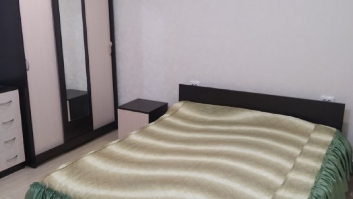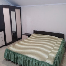 На территории гостевого дома находится отдельно стоящий двухэтажный дом. На втором этаже дома расположены одна однокомнатная квартира и одна двухкомнатная квартира. В однокомнатной квартире одна спальня (15 кв.м), кухня (12 кв.м), ванная комната (6,0 кв.м) и прихожая (4 кв.м). В спальне находится кровать 1600х2000, две прикроватные тумбочки, шкаф, комод, телевизор, небольшой диванчик, установлен кондиционер. Постельное белье, полотенца на каждого гостя по два ( одно 140х80 и второе 90х50). Смена белья один раз в 5-7 дней. В ванной комнате ванна, унитаз, стиральная машинка, умывальник, навесной шкафчик с зеркалом, фен, утюг, гладильная доска. На кухне плита газовая четырёх конфорочная, гарнитур-кухня, стол, стулья, диван, холодильник двухкамерный сухой заморозки, морозильная камера внизу LG, микроволновая печь. В наличии вся посуда для приготовления и приема пищи. Вода холодная-горячая постоянно, не зависим от центрального водоснабжения. . Уборка квартиры после выезда.