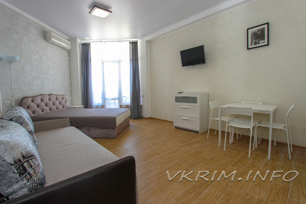 — Новый жилой комплексе «Черноморская набережная», где находиться студия, расположен на берегу популярного среди туристов песчаного пляжа - «Жемчужный».