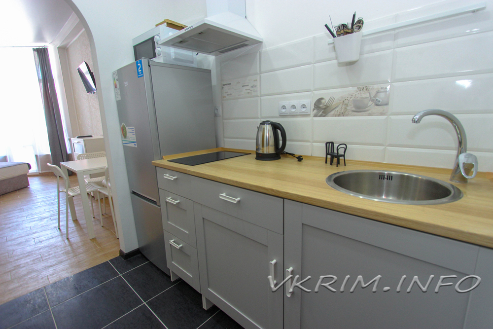 — В квартире сделан современный и стильный ремонт, укомплектована всей необходимой новой мебелью и бытовой техникой, а также кухонным гарнитуров.