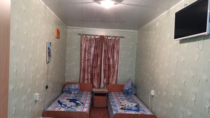 Номер от 2 до 4 чел. Две тахты, 2-спальный диван, шкаф, стол с табуретами, оборудованная кухня (плита газовая, холодильник, посуда), телевизор. Душ и туалет в каждом номере. 4 номера на этаже.