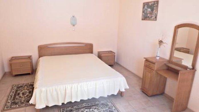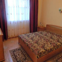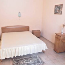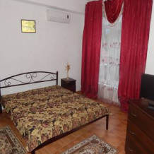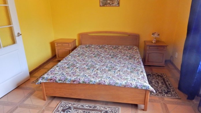 Номер состоит из двух больших комнат, с высотой потолков 3.2 м, балкона, санузла (вода горячая и холодная круглосуточно), кухни (холодильник, газовая печь, набор посуды). При номере своя придомовая территория с летней мебелью.