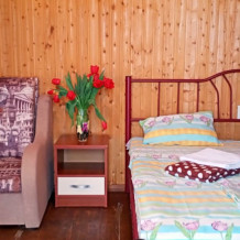 Уютные небольшие деревянные домики-срубы со всеми удобствами. Для комфортного проживания 3 взрослых или 2 взрослых и 2 детей. Четвертое место - евро-раскладушка.