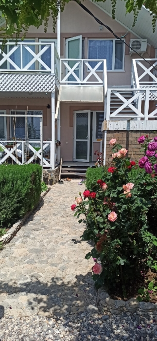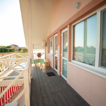 Номер с большим балконом . На первом этаже стиральная машина, кухня и беседка для отдыха. В номере вся необходимая мебель,в том числе : две односпальных кровати в одной комнате,а во второй два двухспальных раскладных дивана, кондиционер, водонагреватель, фен, телевизор, спутниковое, цифровое тв, интернет, санузел совмещенный.Холодная и горячая вода -круглосуточно.
