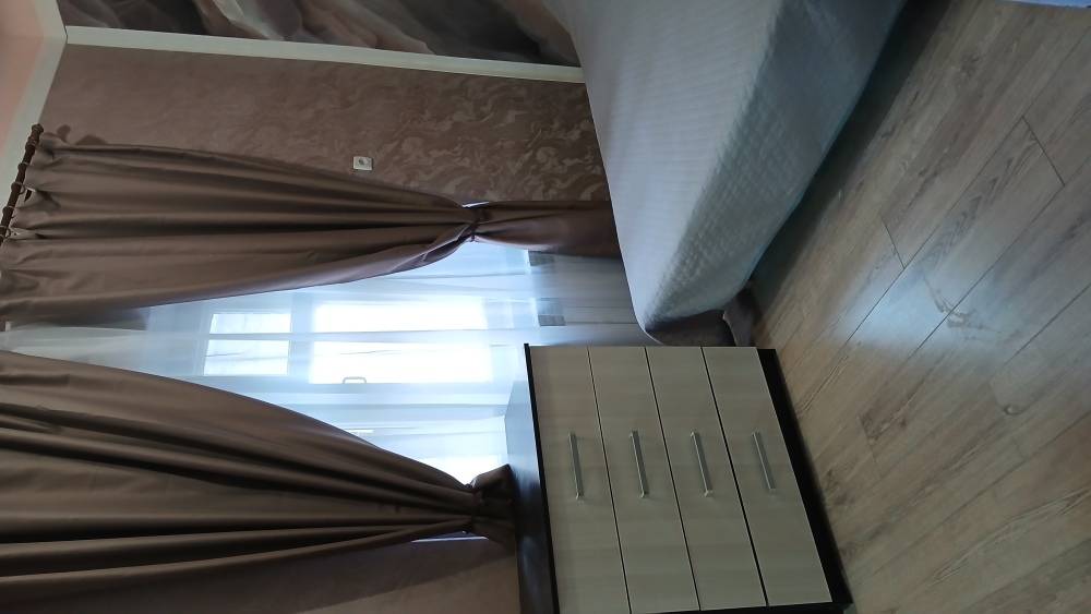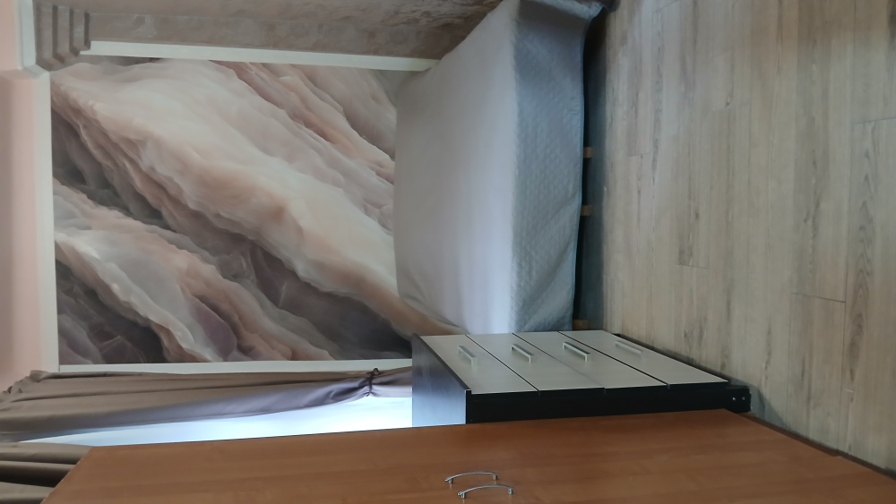 Первая комната - небольшая, 6-8 кв.м. В ней находится комод и две кровати. Вид из окна открывается во двор дома. Вход в комнату отдельный, с прихожей. Вторая комната - зал, 24-26 кв.м. В ней: две кровати (можно сдвинуть), раскладной диван, шифоньер, стол, стулья, телевизор, кондиционер. Вид из окон открывается во двор, на свою беседку (зону отдыха). Вход в комнату - с той же прихожей, откуда и в первую комнату. Третья комната - две кровати (можно сдвинуть), шифоньер, комод. Вид из окна на закрытый двор, на стену. Из этой комнаты можно выйти в зал. А можно - на кухню, из которой можно попасть во двор, в дом можно зайти из двух разных сторон - или с прихожей, или из кухни. В кухне: газовая плита, микроволновая печь, набор посуды, большой холодильник. Рядом санузел. Вода горячая и холодная постоянно за счет накопителя.
