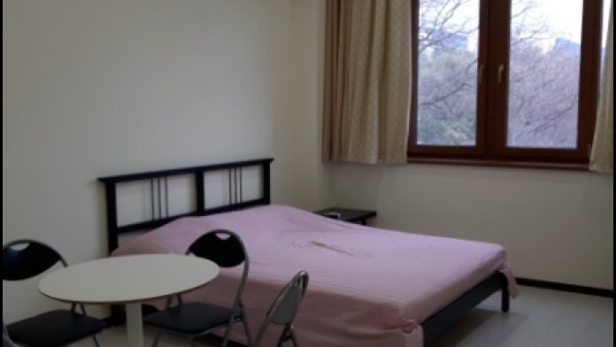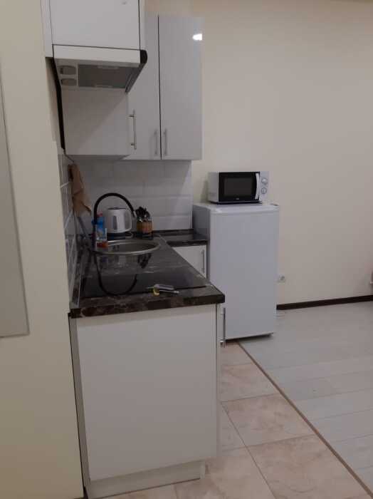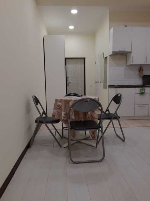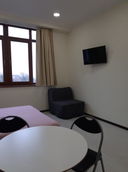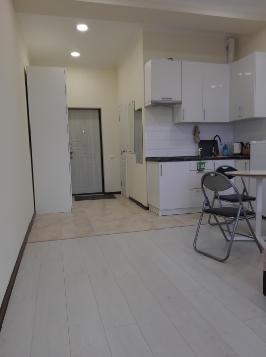 В студии сделан свежий ремонт. Есть все необходимое для жизни и приятного отдыха. Двуспальная кровать 1600х2000 и кресло-кровать (на ламелях). Рекомендуется для проживания 2,3 человек. Постельное белье и полотенца предоставляем.