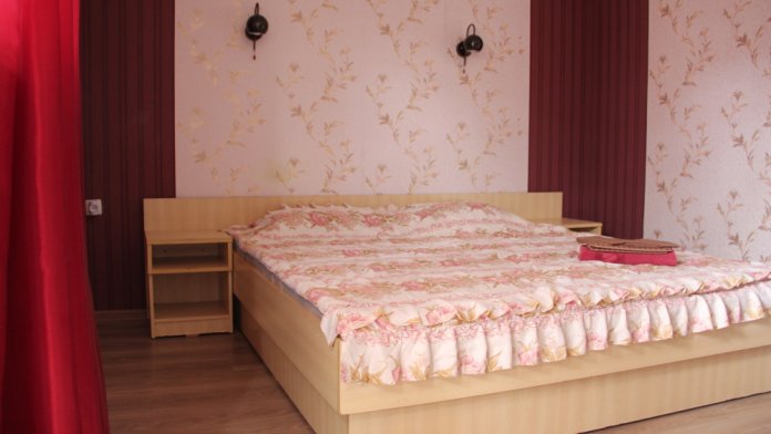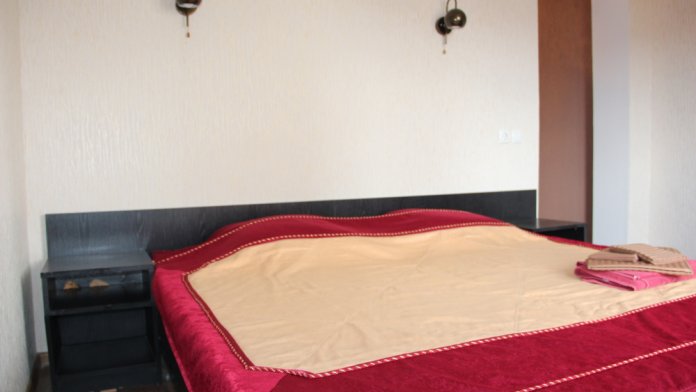 Комфортный двухкомнатный номер. В первой комнате: двуспальная кровать, телевизор, кондиционер. С этой комнаты выход в ванную комнату. Во второй комнате: односпальная кровать и диван. В коридоре расположен холодильник и шкаф.