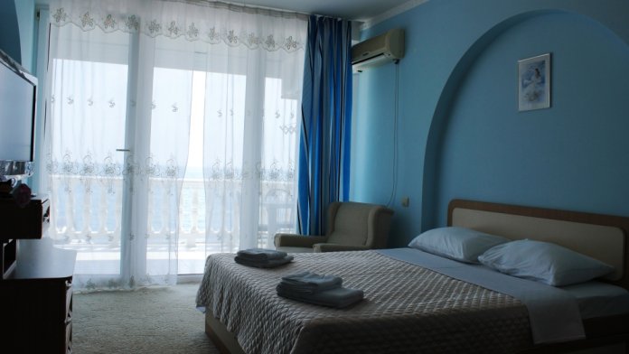 Гостевой дом «Blu-Marine» расположен в маленьком курортном поселке Утес между Алуштой и Ялтой, на первой береговой линии в непосредственной близости от моря (10 метров).