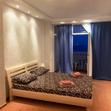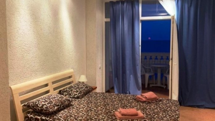 Уютный номер рассчитан на размещение от 4 до 5 человек: в номере большая двуспальная кровать и 2 односпальные кровати, дополнительное место (еврораскладушка) - комнаты раздельные; холодильник, кабельное TВ, кондиционер (в каждой комнате), чайник, шкаф, трюмо, санузел (горячая вода), балкон с видом на море, Wi-Fi.