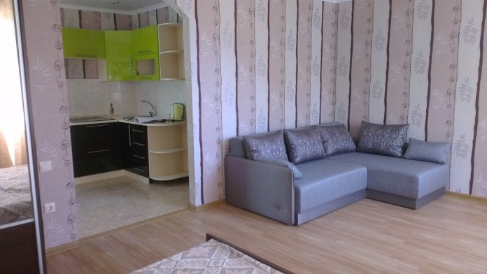 В комнате большая 2-спальная кровать, большой угловой раскладывающийся диван. Кабельное телевидение, wi-fi, кондиционер.