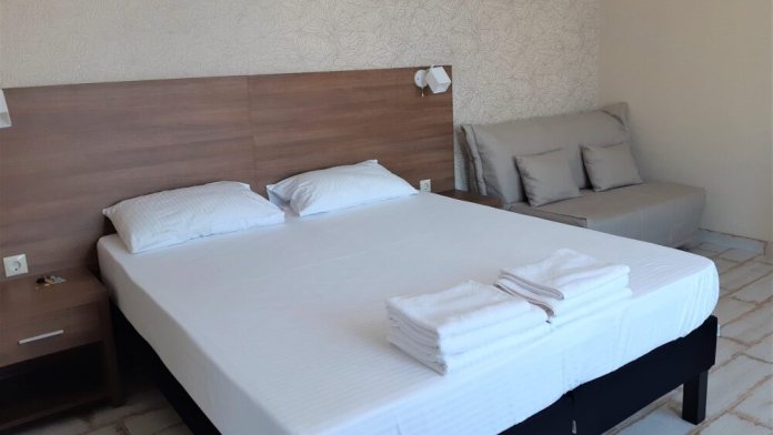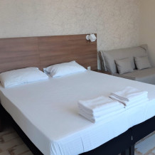 В номере двухспальная или 2 односпальные кровати. Холодильник на этаже.