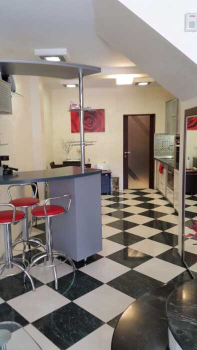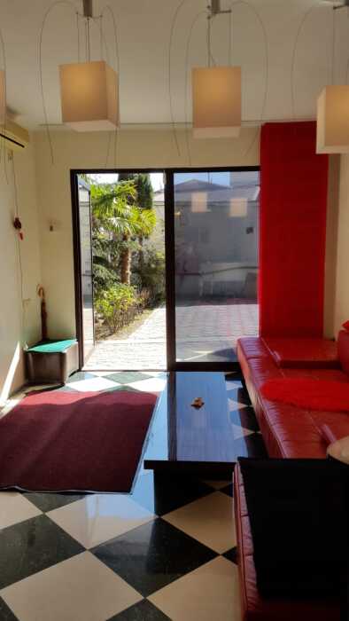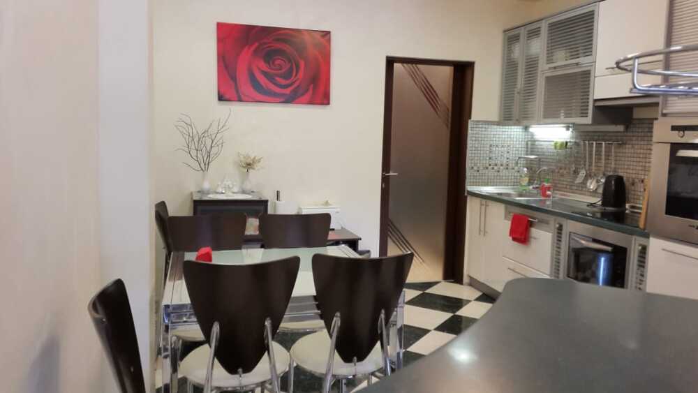 На первом этаже прекрасно оборудованная кухня-столовая: электропечь, СВЧ, мойка, вытяжка, духовка, посуда и посудомоечная машинка, большой холодильник и обеденный столик со стульями. В холле - зона отдыха с диваном и большим ТВ. Во дворе есть мангал общего пользования. На 4 этаже панорамная терраса, по запросу постояльцев пользование стиральной машинкой-автомат, гладильная доска и утюг.