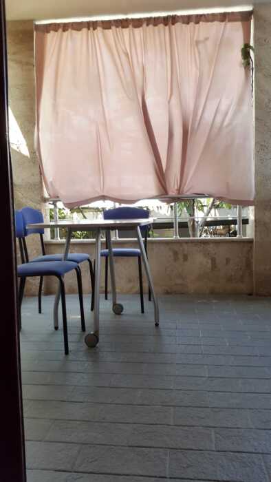 У номера есть просторная жилая лоджия с раскладным диваном и столиком с видом на стоянку.