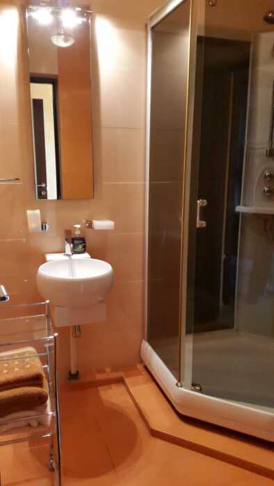Небольшой номер с выходом на первый этаж эллинга с кухней-столовой общего пользования.