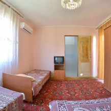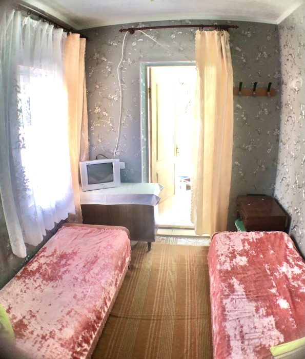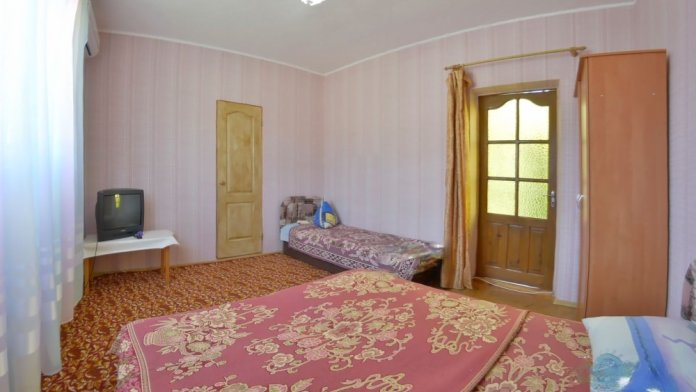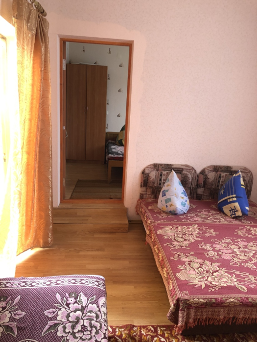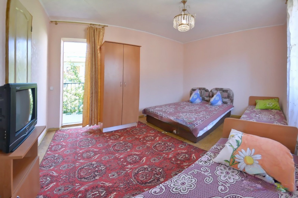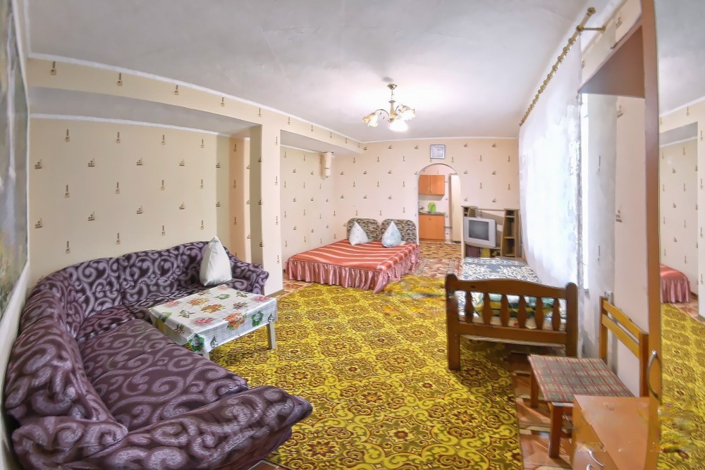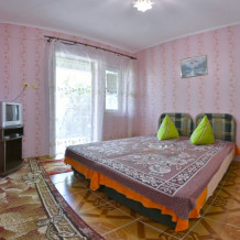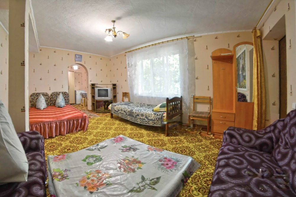 Просторный двухкомнатный номер, для семьи или компании. Отдельно спальня с двуспальной кроватью и вторая комната для троих человек. Одна большая кухня на два номера с полным комплектом кухонных принадлежностей. Номер находится на втором этаже гостевого дома. В номере: кабельное ТВ,WiFi, кондиционер, санузел.