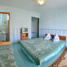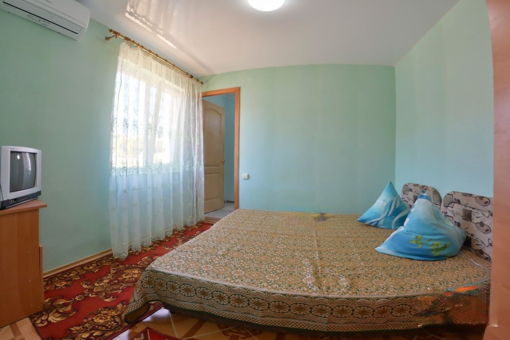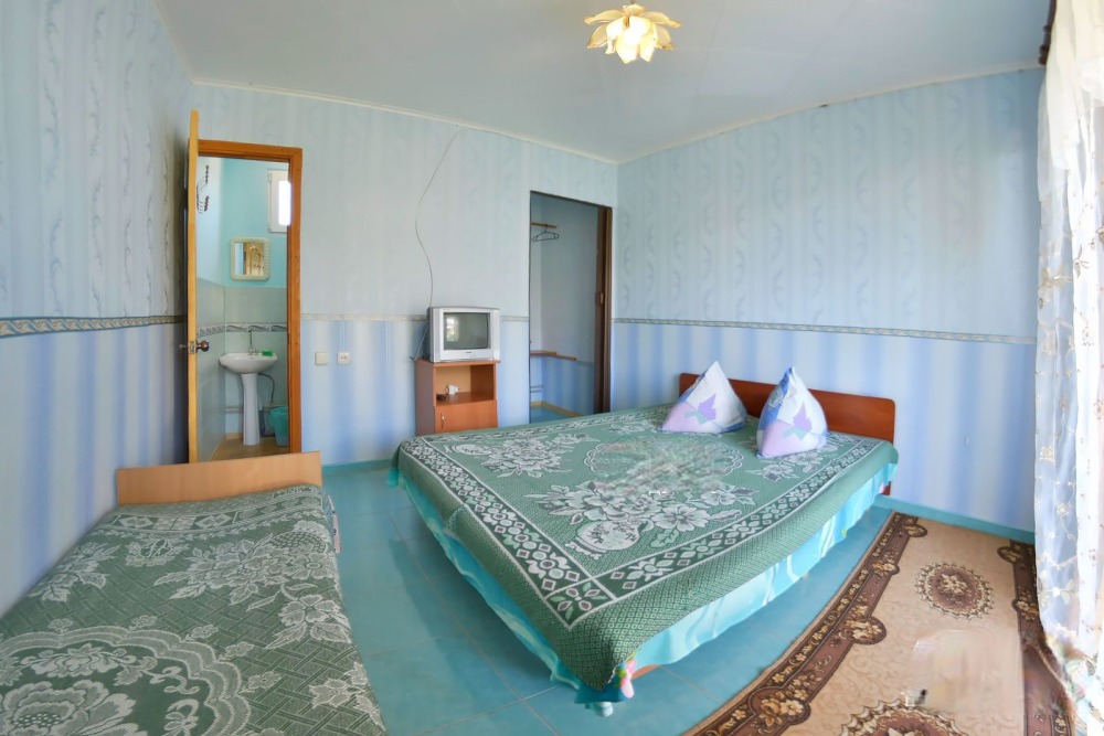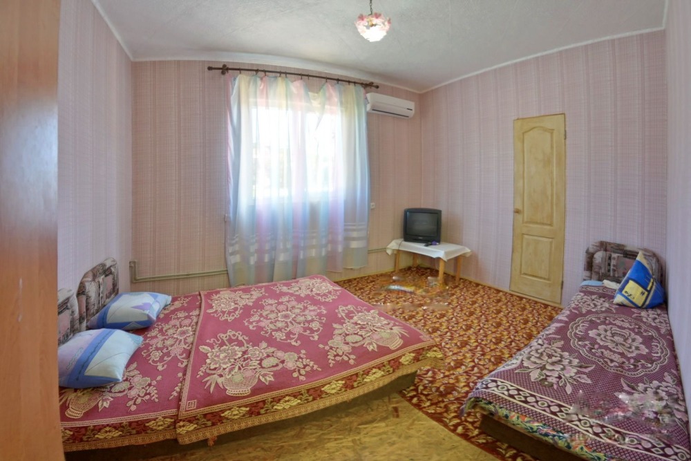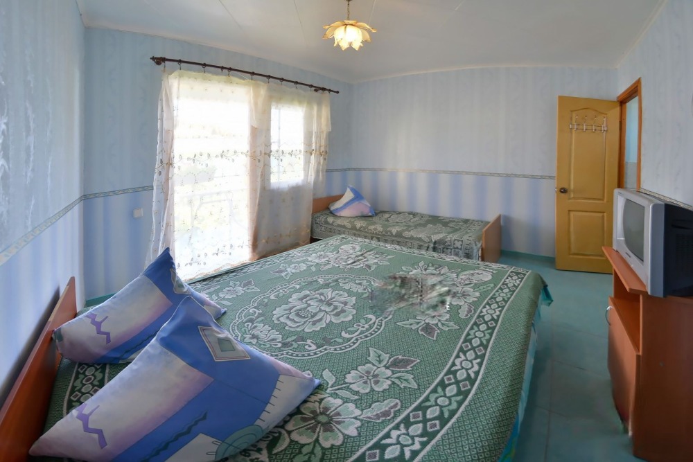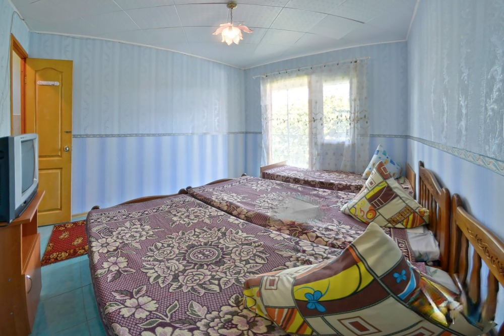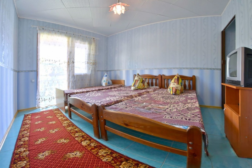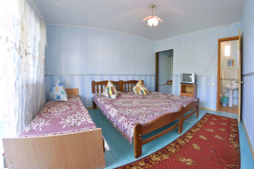 Комфортный 4-местный номер с кондиционером. Также кабельное ТВ, WiFi, стоянка огороженная (бесплатно), полноценная укомплектованная кухня на два номера и отдельным холодильником.
