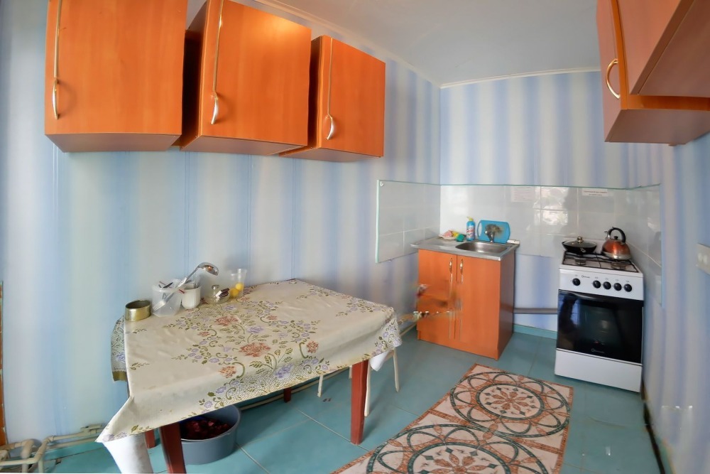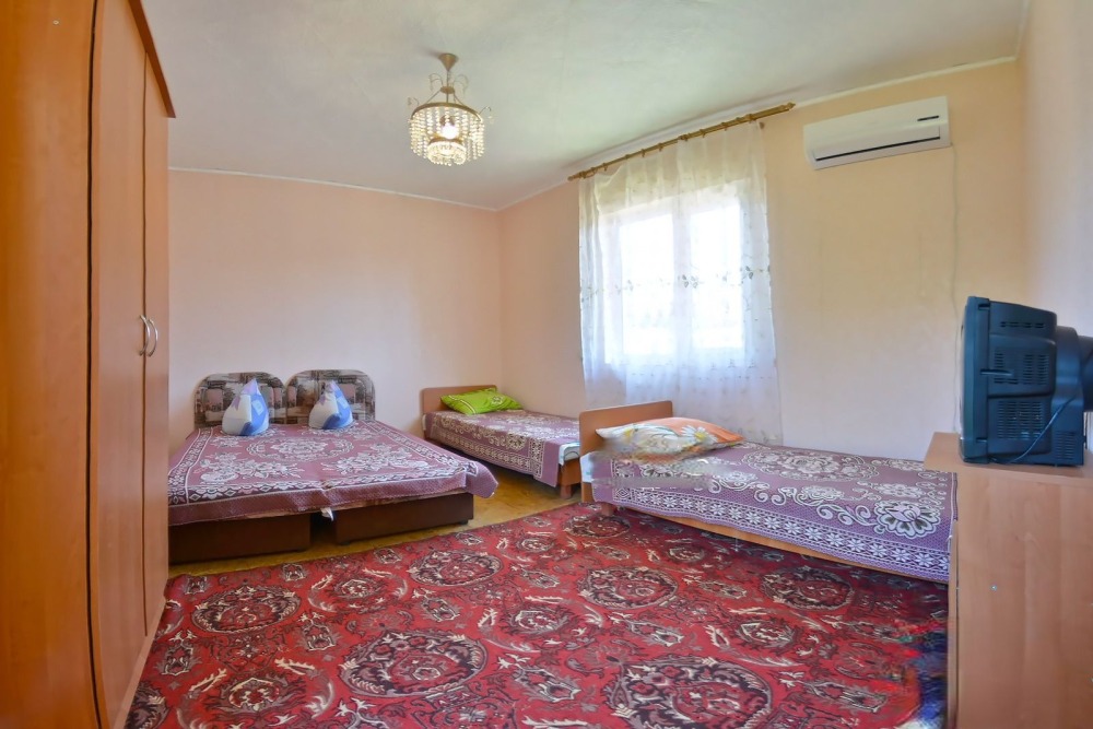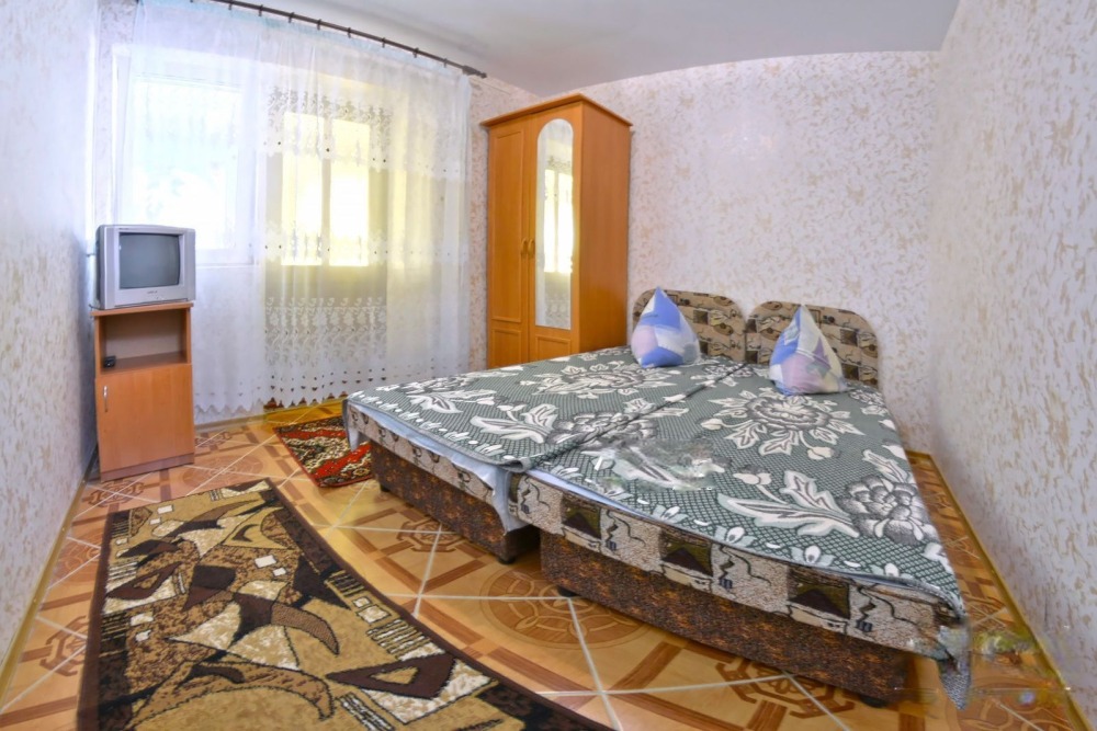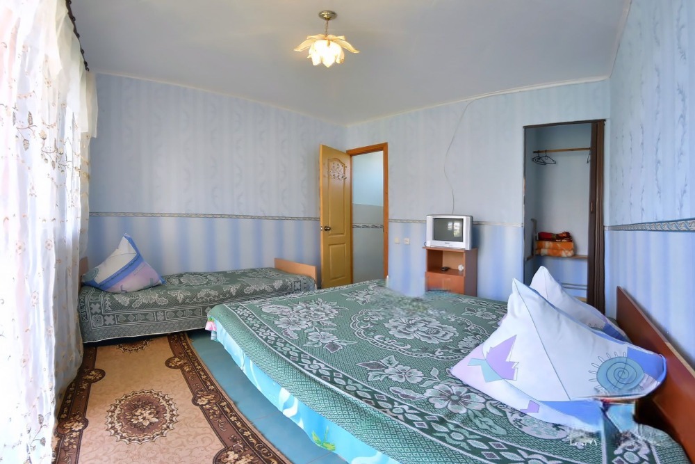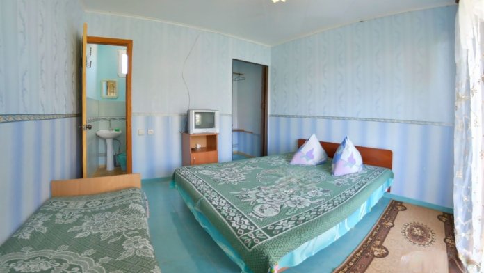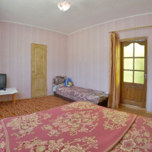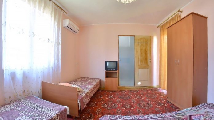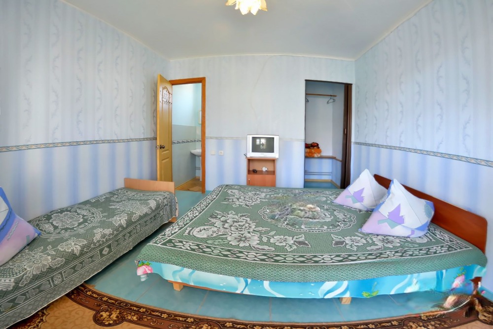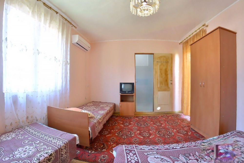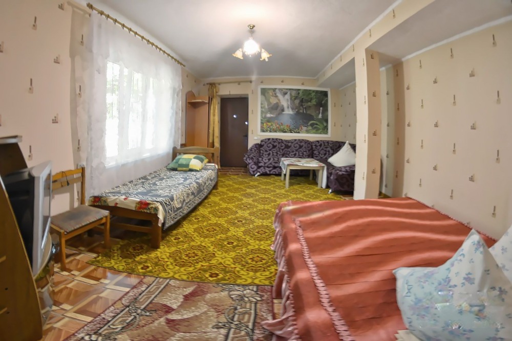 Комфортный 4-местный номер с кондиционером. Также кабельное ТВ, WiFi, стоянка огороженная (бесплатно), полноценная укомплектованная кухня на два номера и отдельным холодильником.