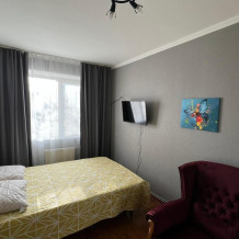 Двуспальная кровать с ортопедической основой и диван позволят вам хорошо выспаться, а новая техника, безусловно сделает ваше пребывание приятным.