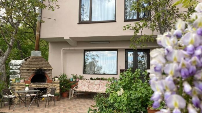 Дом окружен лиственными и хвойными деревьями, чистый воздух и много цветов.