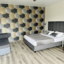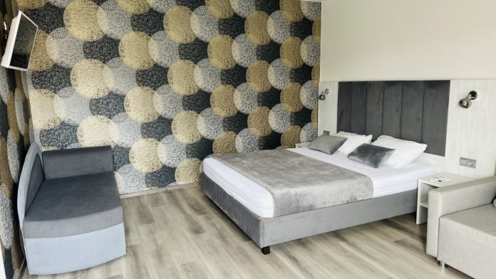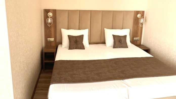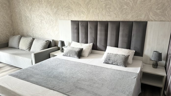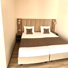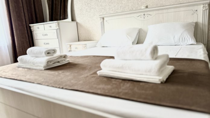 В номере: мини -холодильник, чайник, фен, по 2 полотенца на человека, телевизор в каждой комнате, кондиционер, санузел.