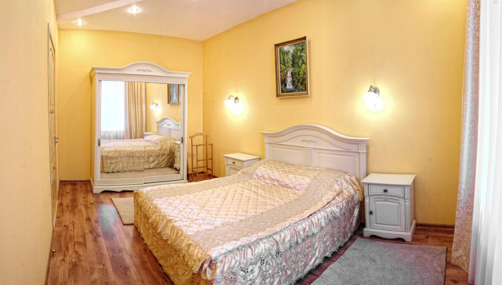 - уютная спальня с большим зеркальным шкафом и просторная гостиная, где Вы в непринужденной обстановке сможете смотреть ТВ.
