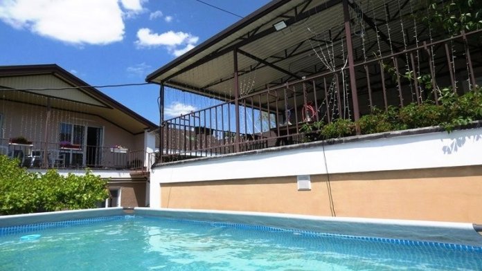На территории есть мини-кафе «Шашлычный двор», есть отдельная кухня, зона барбекю, каркасный бассейн 6х3 (200р./чел.), баня, wi-fi, стиральная машина, утюг. Облагороженная зелёная территория, чисто, уютно, работает горничная. Имеется парковка.