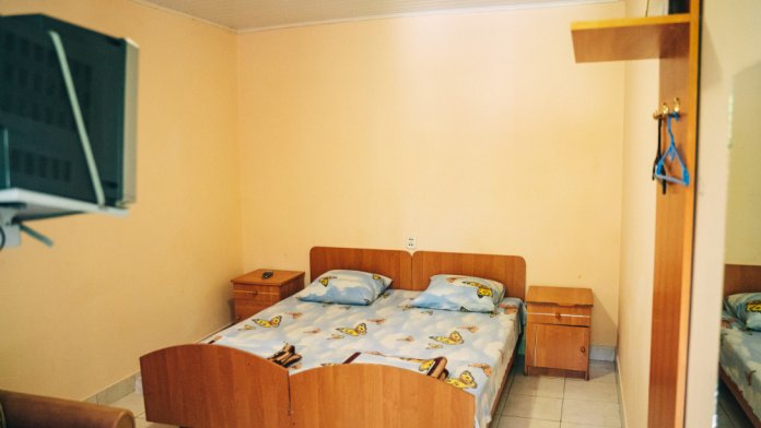 Номера «Эконом» расположены на первом этаже. В комнате есть вентилятор, телевизор, 2 односпальные кровати, раздвижной двухместный диван, гардеробная стойка, посуда. Санузел раздельный расположена на этаже. Холодильник и кухня общие.