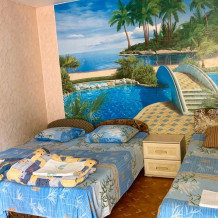 Удобно размещаться семьям и компаниям по типу квартир (на 1 и 2 этаже гостевого дома). На 2 этаже два 3-местных номера, посередине расположена общая кухня, санузел. Имеется общий балкон.