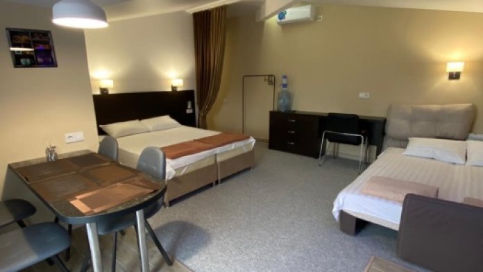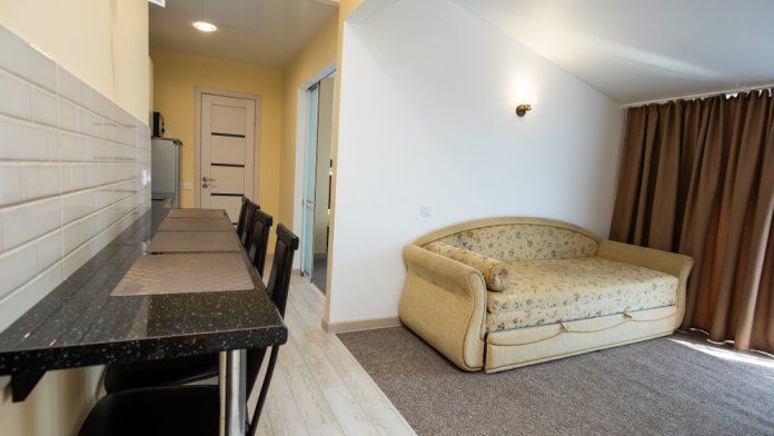 Номер отлично подходит для семейного отдыха . Санузел и кухня находятся в коридоре на этаже.