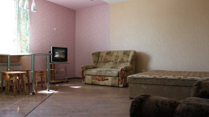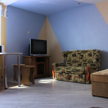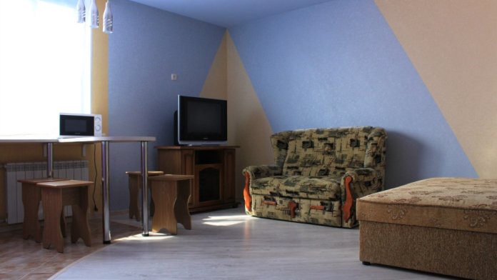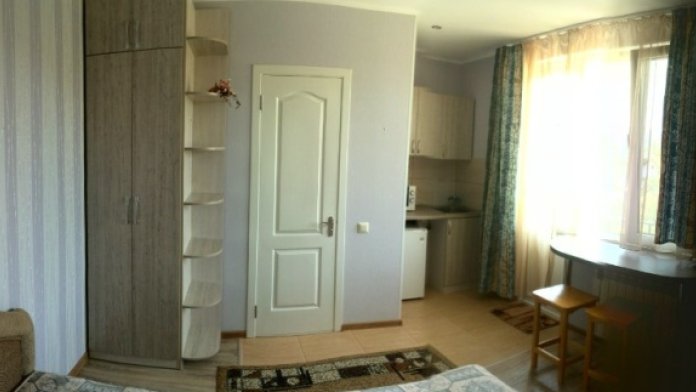 Два 2-местных и два 4-местных номера. Номера выполнены в виде однокомнатной квартиры-студии, со всеми удобствами. Кондиционер, холодильник, телевизор, интернет WI-FI, туалетная комната с душевой кабиной, стиральная машина-автомат. Автономное отопление, горячая-холодная вода постоянно.