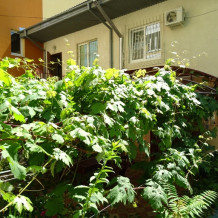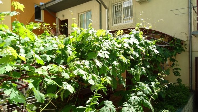2 этаж: вход с тыльной стороны дома, через небольшой дворик, оформленный в виде большой беседки, вторая половина дворика накрыта виноградом и растёт различная зелень. Также имеются столы, скамейки, а так же мангал.