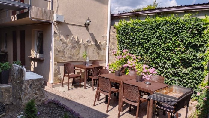 Уютный, с любовью ухоженный зеленый дворик, не оставит равнодушными тех, кто любит посидеть в теньке за любимой книгой.