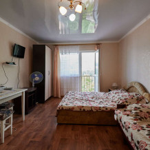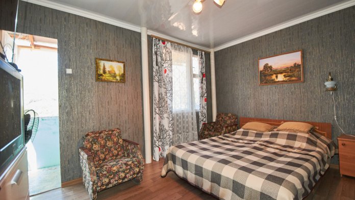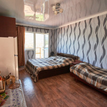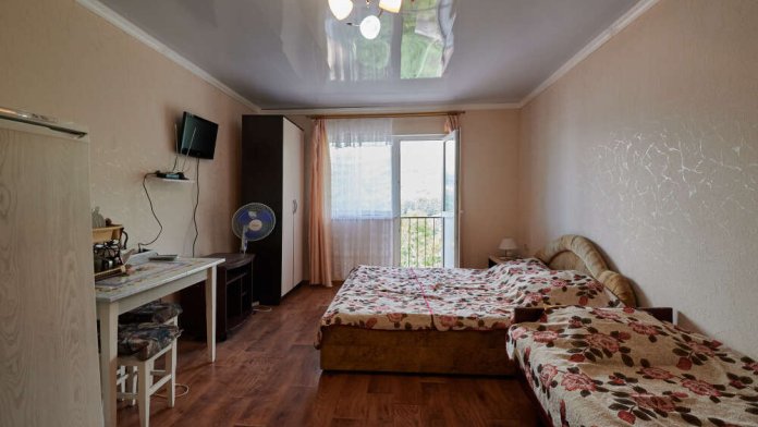 Трехместный номер с балконом. Вид на море и горы. С общей летней кухней на улице, и общим душем на несколько номеров.