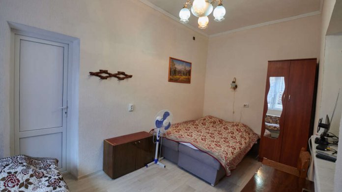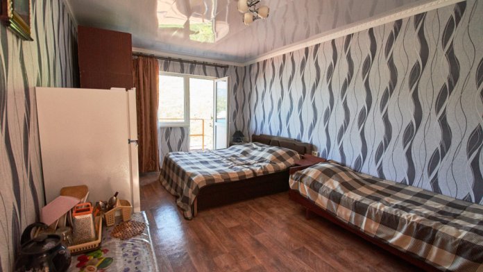 Трехместный номер с видом на море и горы. С летней общей кухней на улице. Душ общий на несколько номеров.