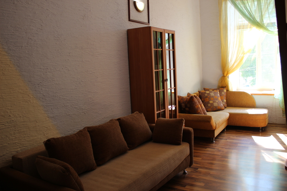 Возможен отдых двумя небольшими семьями с маленькими детьми (четыре больших и два маленьких дивана).
