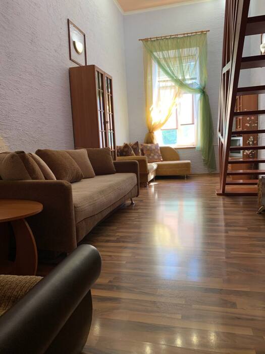 Предлагаю для комфортабельного отдыха у моря, свою трехкомнатную квартиру в трех уровнях с двумя сан/узлами . Квартира расположена на набережной В. Терешковой, первая береговая линия, вход на обновленный пляж , в 50 метрах от квартиры .Новый парк с детскими площадками и уникальными фонтанами ! Центр туристического маршрута «Малый Иерусалим» . Рядом находятся культурные и развлекательные заведения, так же магазины, кафе, столовые, парк, детские и спортивные площадки. Недалеко остановки общественного транспорта. Квартира полностью оборудована для комфортного проживания и отдыха. На первом уровне находится большая комната с двумя большими диванами, небольшая прихожая, сан/узел с душевой кабиной. На втором уровне находится не большой внутренний балкон с раскладным диваном. Так же полностью оборудованная кухня, со всем необходимым для кулинарии и столовая зона, электроплита, микроволновка, двухкамерный холодильник. На третьем уровне расположены две комнаты и второй сан/узел. Из комнаты выход на балкон — террасу с прекрасным видом на море, набережную, порт. Балкон оборудован столиком и удобными лавками, проведено освещение. Из дополнительного стиральная машина, бойлер, сушилка для белья, гладильная доска, утюг,